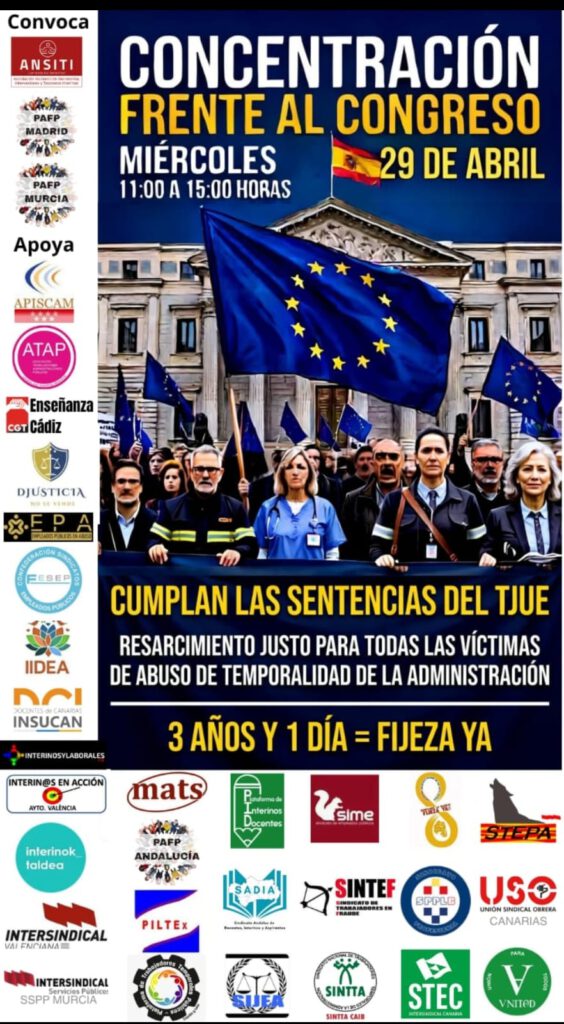 La Confederación de Sindicatos de Empleados Públicos (FESEP) ha convocado una concentración el próximo 29 de abril para reclamar una solución definitiva para el personal funcionario interino en fraude de ley, tras la última sentencia del TJUE.